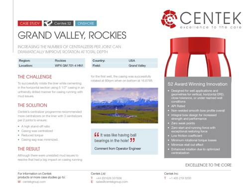 Centek’s centralizer programme recommended 3 centralizers per 2 joints to ensure: