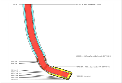 For a Danish operator, a tight tolerance cement job was required in an exploration well in the North Sea. 9 5/8-in. casing was to be run inside 13 5/8-in. casing and an 11 3/4-in. liner. The well had a 10.625-in. minimum restriction and a drift of 12 1/4 in. in open hole. The operation involved a highly deviated well with a 66° inclination and a total depth (TD) of 13,382 ft and uncertain hole conditions after run in hole (RIH) with casing and start circulation.