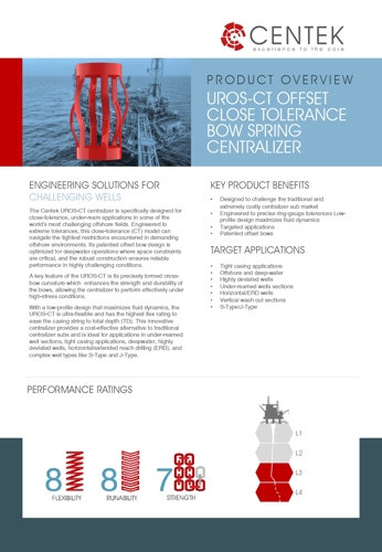 The UROS-CT centralizer is designed to be ultra-flexible to ease the string to TD having the highest flex rating.