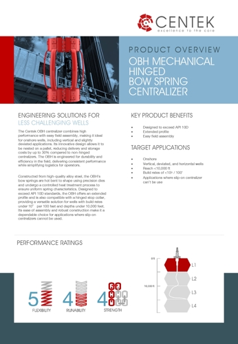 The Centek OBH centralizer combines high performance with easy field assembly, making it ideal for onshore wells, including vertical and slightly deviated applications.