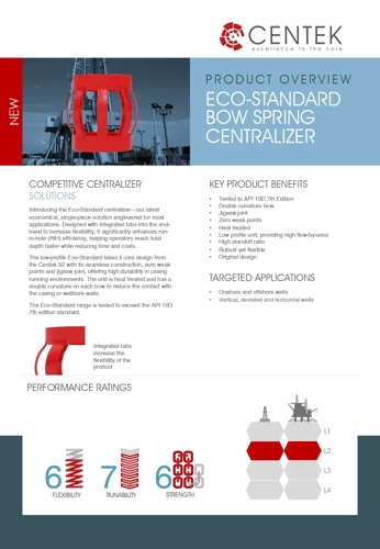 Introducing the Eco-Standard (ES) centralizer—our latest economical, single-piece solution engineered for most applications. Designed with integrated tabs in the end-band to increase flexibility, it significantly enhances run-in-hole (RIH) efficiency, helping operators reach total depth faster while reducing time and costs.